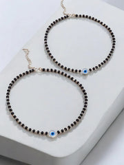 925 Sterling Silver Evil Eye Black Beads Anklet Pair