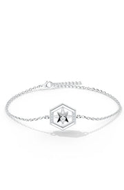 A perfect balance of geometry and starlight, this bracelet brings the brilliance of the night sky to your wrist. The guiding light of a radiant star, positioned at the center of a hexagonal frame, is a single moissanite. More glistening stones, scattered over the edges, sparkle like far-off constellations. It's a subtle yet powerful composition that serves as a reminder that enchantment exists even in structures and that the stars have limitless potential.