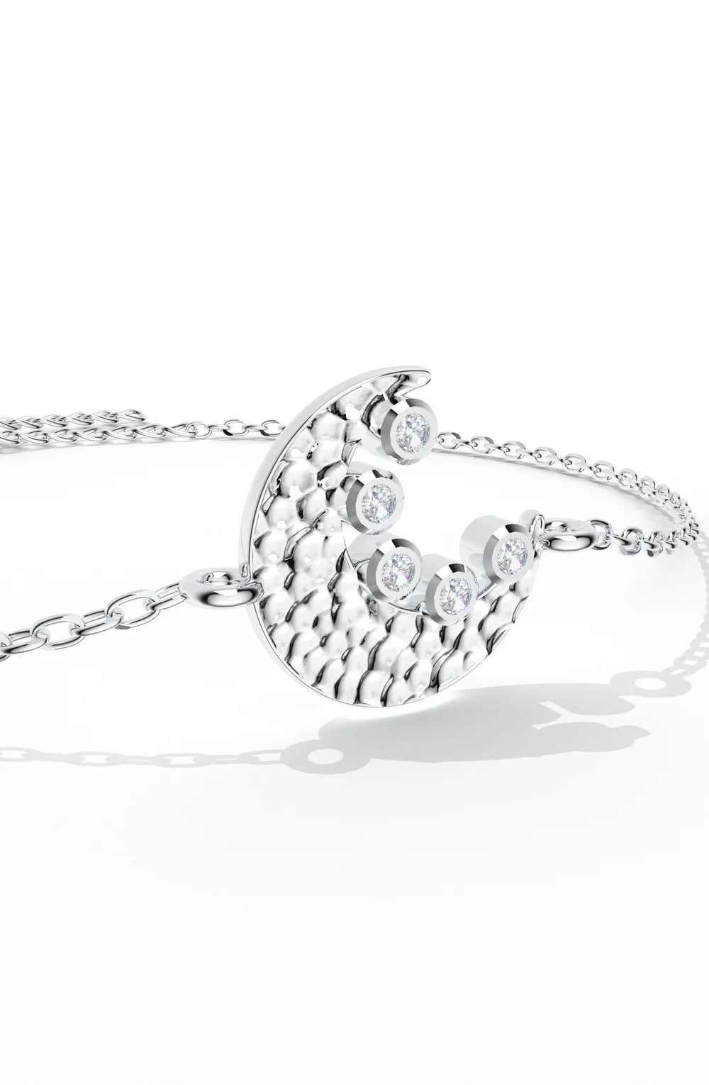 Like the first sliver of moonlight after the darkest night, this bracelet is a quiet symbol of new beginnings. Echoing the glow of a rising moon, its sculpted crescent shimmers with moissanite accents, ever-changing but unwavering in its promise. A reminder that each stage is a step forward, bringing with it the potential for greatness.