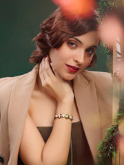 Like a string of holiday baubles strung together in perfect harmony, this tennis bracelet is a celebration of festive joy. Each vibrant enamel sphere dances between luminous pearls, while alternating moissanite-studded embellishments sparkle like twinkling fairy lights. Fastened with a secure lobster lock, it’s a playful yet elegant reminder that magic is always within reach.