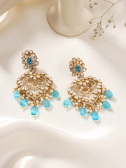 Celebrate exquisite craftsmanship with our Chandbali earrings, blending blue topaz with classic pearl and moissanite settings.