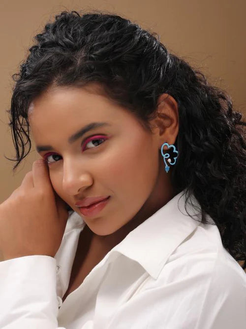 Like a dreamy monsoon morning, this earring captures the romance of rainclouds. Crafted in ceramic enamel, its soft blue outline mimics a drifting cloud. A pearl drop mirrors the first falling raindrop, while a serene chalcedony evokes the calm after the storm. It’s a poetic whisper of nature’s rhythm—gentle, moody, and endlessly enchanting.
