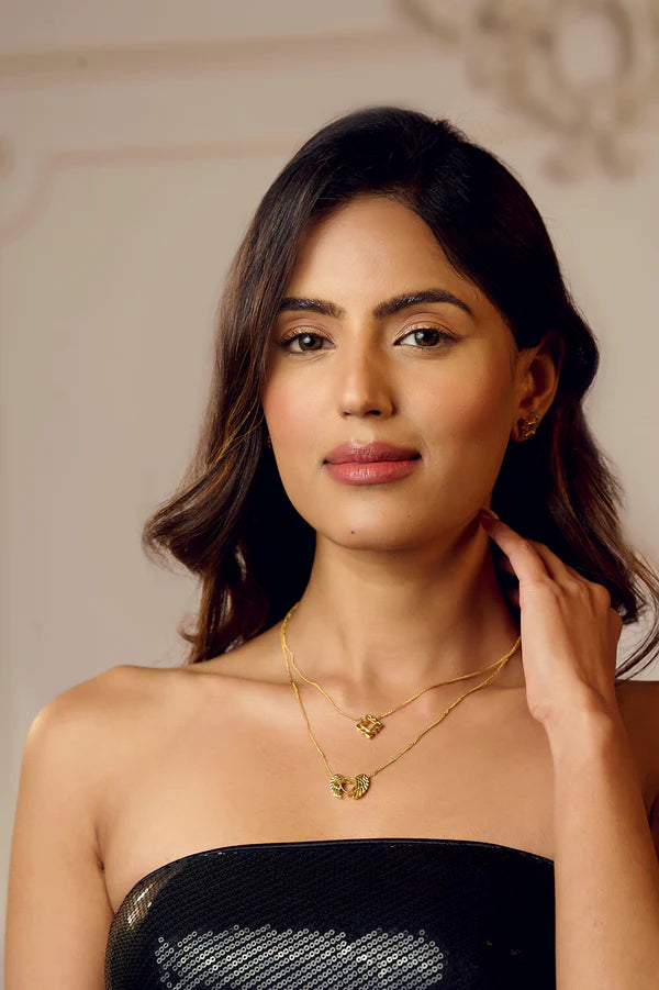Where modern elegance meets timeless charm—this fusion necklace set features two distinct designs: a classic angel wings heart pendant and a Mughal-inspired silver motif with gold plating. Perfect for layering, effortlessly chic, and undeniably modern.
