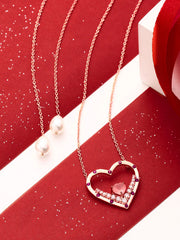 Have you ever seen something so enchanting? So perfectly delicate and, at the same time, bold? A design that puts itself out there- a heart shaped pendant with moissanite and pink chalcedony details that make it absolutely timeless- significant of a bond that can withstand the test of time.