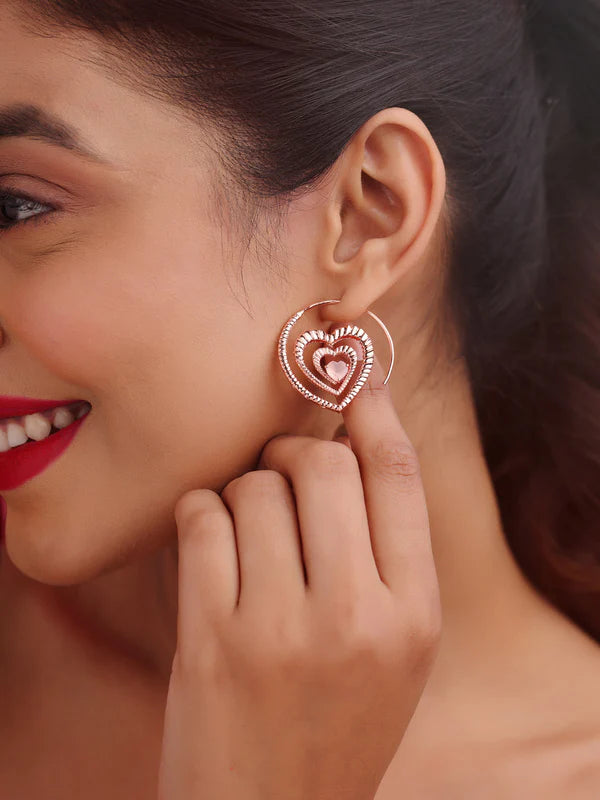 Introducing Rose Gold Love Pink Chalcedony Elysian Collection Hoops, a love inspired earring with a chalcedony centrestone and rose gold hooped hearts. A modern twist to classic shapes.