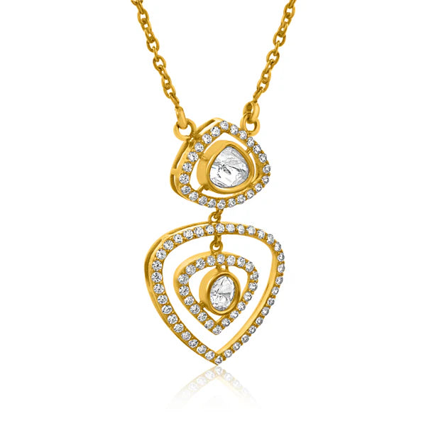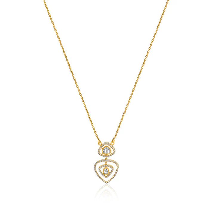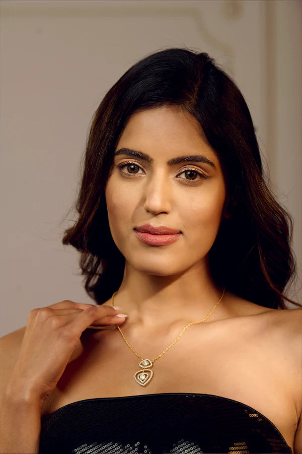 This 24K gold-plated necklace showcases two dazzling moissanite stones, designed to catch every eye. With its radiant shine and elegant design, this piece is crafted to stand out—making it a stunning addition to any jewellery collection.