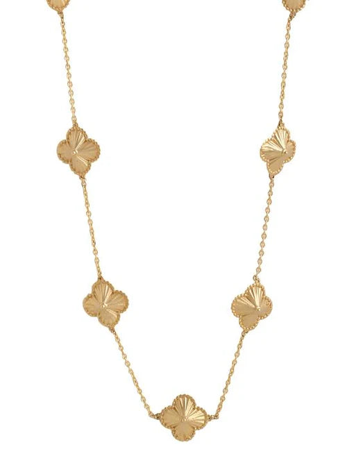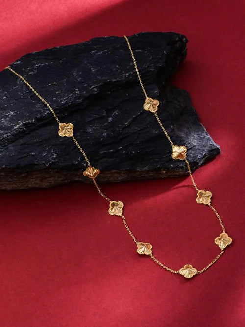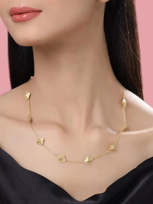A simple yet stunning necklace, featuring delicate charms inspired by floral beauty and intricate frills. With five beautifully crafted flowers, this necklace is the perfect gift for any occasion—whether it’s Valentine’s Day, Christmas, or just a special moment to celebrate her.