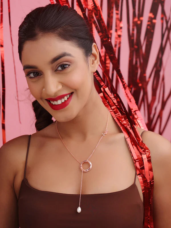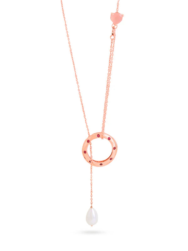 There’s a certain beauty to asymmetrical jewellery- where every line and every stone is embedded with intention. As is this Rose Gold Love Motif Pink Chalcedony & Pearl Elysian Collection Ring Pendant- with its tilted pearl drop design and pink, heart shaped chalcedony enclosement; a style statement for the bold and chic you!