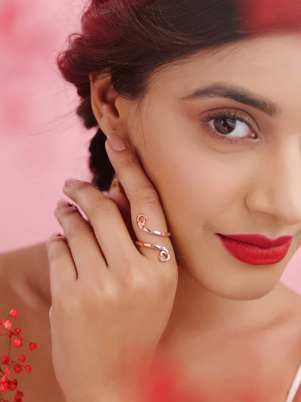 Ah, love—the one thing that can send just about anybody down a rabbit hole full of exciting emotions, overwhelming them with joy and passion. We, at Kicky and Perky, have tried to embody that feeling in a ring—with its overwhelming beauty and stylish design. This open ring, crafted in a spiral formation, mirrors the madness (and necessity) that is LOVE.