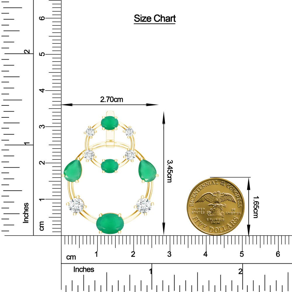 These gorgeous ear jackets combine two different styles in one, with their brilliant moissanites and glowing green onyx accents. Wear the delicate hoops for a sophisticated style, or add the second layer for a refined, out-of-the-world effect. The layered design creates a mesmerizing interplay of texture and depth, making them a statement of effortless elegance. These earrings embody adaptability with easy grace, a perfect fusion of contemporary artistry and classic charm.