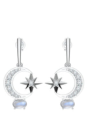 Our designers wanted to capture the beauty and elegance of a solar eclipse—an awe-inspiring moment when the moon embraces the sun in a celestial waltz. This exquisite earring brings that vision to life, with a moissanite-studded crescent moon gracefully encircling a radiant star. Below, a luminous moonstone dangles like the soft halo of light that lingers at the eclipse’s edge, a reminder that even in shadow, brilliance endures.
