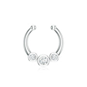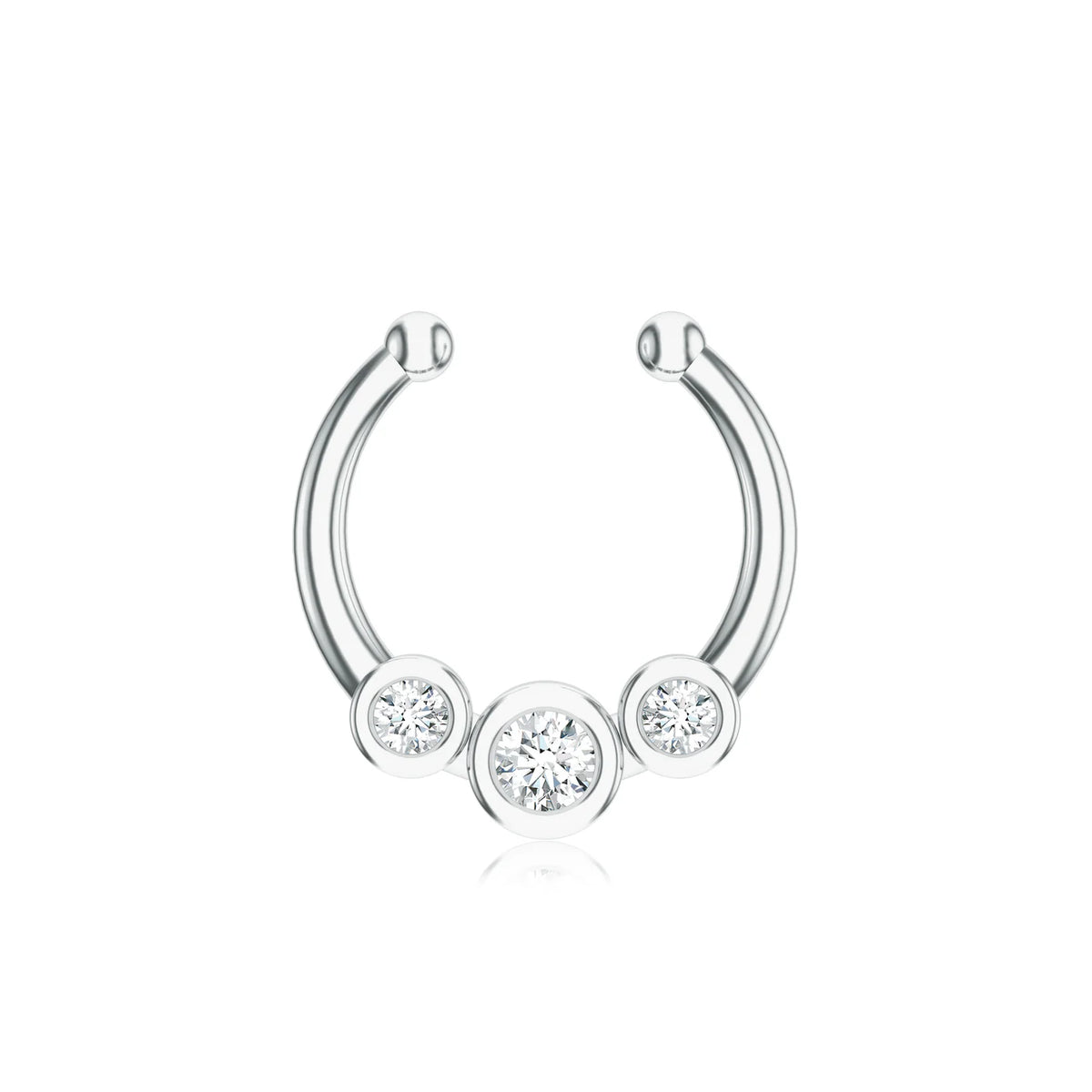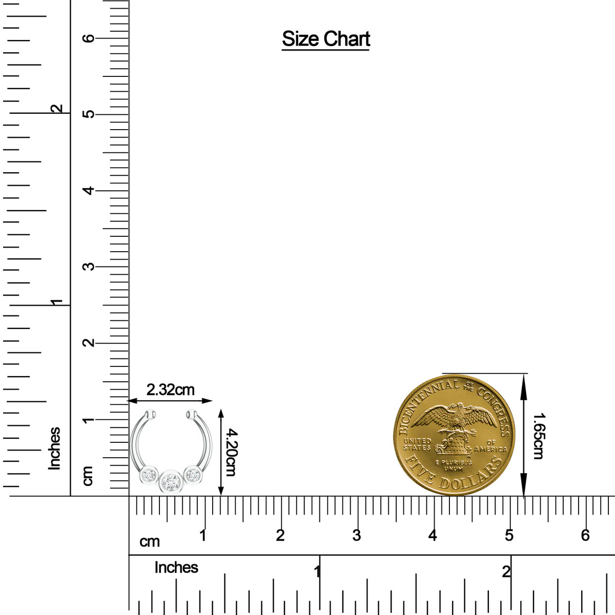This 925 sterling silver piece is versatile and effortlessly stylish, perfect for use as a septum and nostril nose pin. With its three brilliant moissanites, it shimmers with subtle brilliance, giving your everyday look a refined touch. This piece is the ideal representation of personality and grace, combining classic sophistication with contemporary charm.
