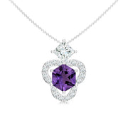 This stylish pendant showcases abstract patterns, crafted from 925 sterling silver and adorned with vibrant amethyst and sparkling moissanites, making it a chic choice for everyday elegance.