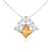 A beautiful pendant inspired by abstract geometrical designs, featuring citrine and moissanites for a unique and elegant touch to your everyday look.