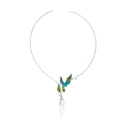 You are more than the one- a friend, a lover, and a role model for your family. This necklace captures the richness of your spirit and honors your many different qualities. Like you, it is a multidimensional, dazzling, and genuinely unique combination of brilliant pearl, deep teal and blue enamel, and sparkling moissanites.