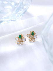 Embrace modern royalty with these stunning earrings from our Niloofar Collection. Inspired by abstract floral motifs, these earrings feature a harmonious blend of green talfe, diamond moissanite, and moissanite polki, all beautifully set in 24K gold-plated 925 sterling silver. The design combines timeless elegance with a contemporary edge, making it a versatile addition to any Jewellery collection.