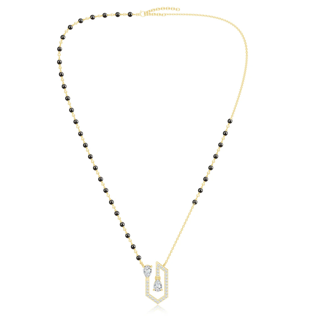 Modern geometric patterns have an understated elegance. With an asymmetric beaded chain and sparkling teardrop moissanites, this contemporary mangalsutra embraces that simplicity to create a timeless yet unique item. It is the ideal fusion of classic elegance and contemporary style, a symbol of love reinvented.
