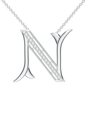 Signery ‘N’ Initial Pendant – Moissanite & Rhodium Plated
