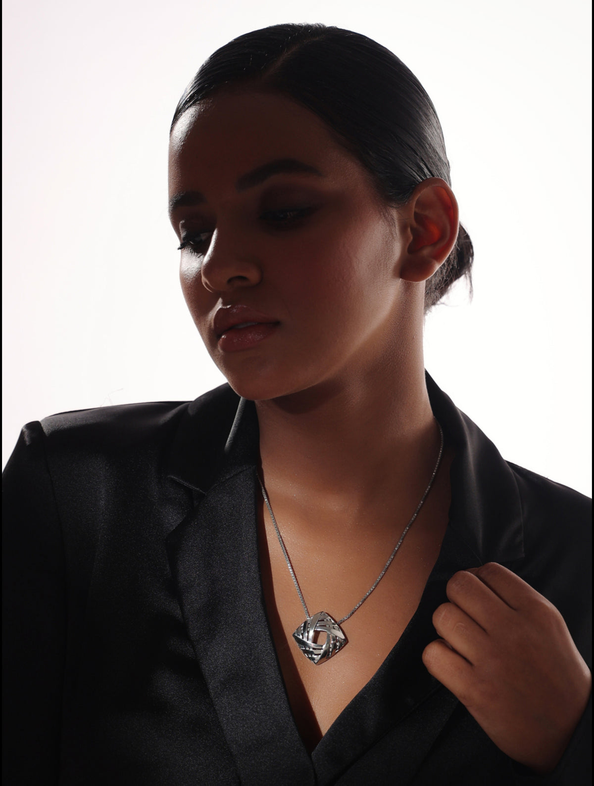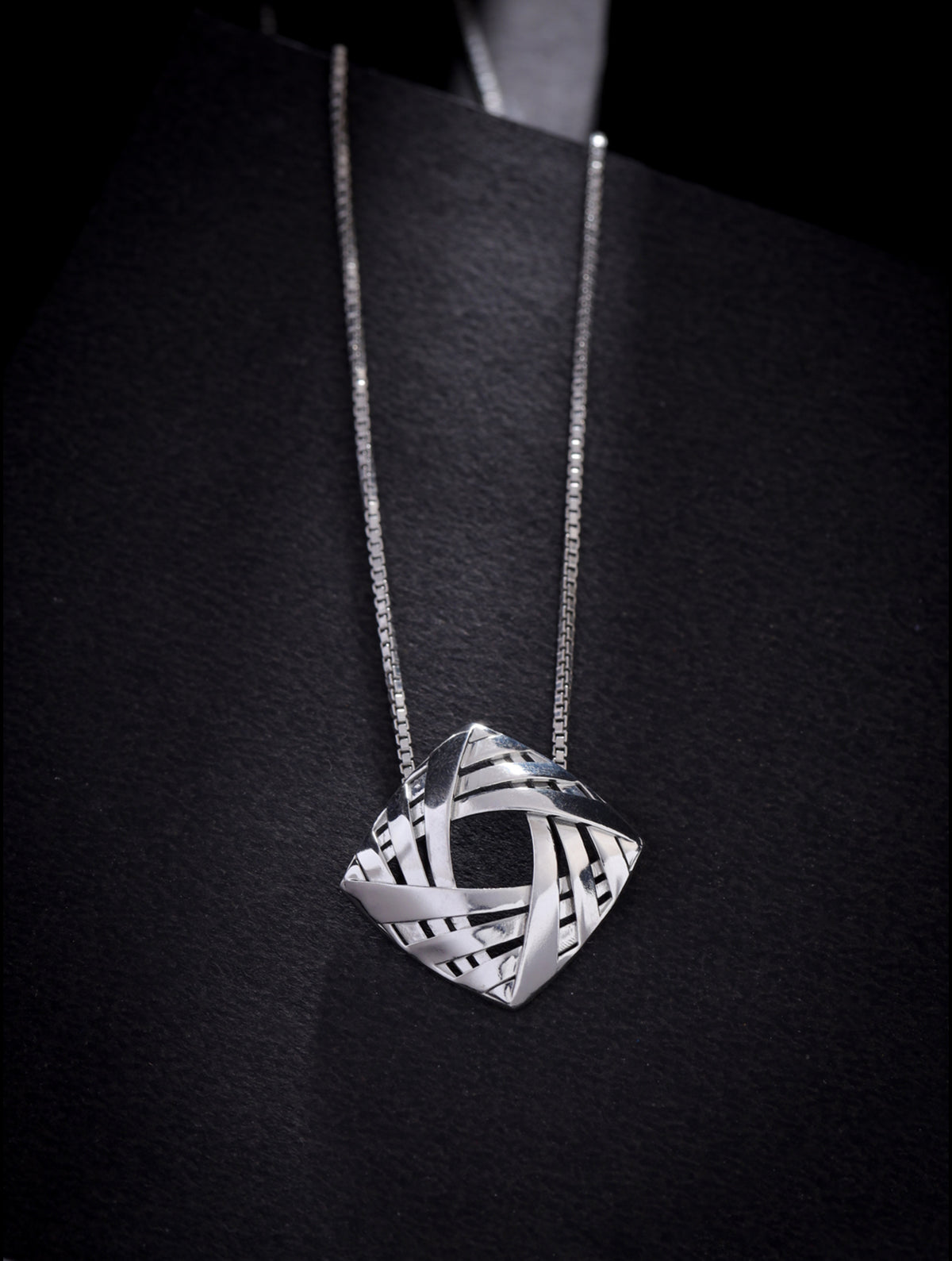 Inspired by the timeless weaving patterns, this 925 sterling silver pendant from our Lumina Collection combines traditional craftsmanship with contemporary design, all under a protective coat of silver rhodium.