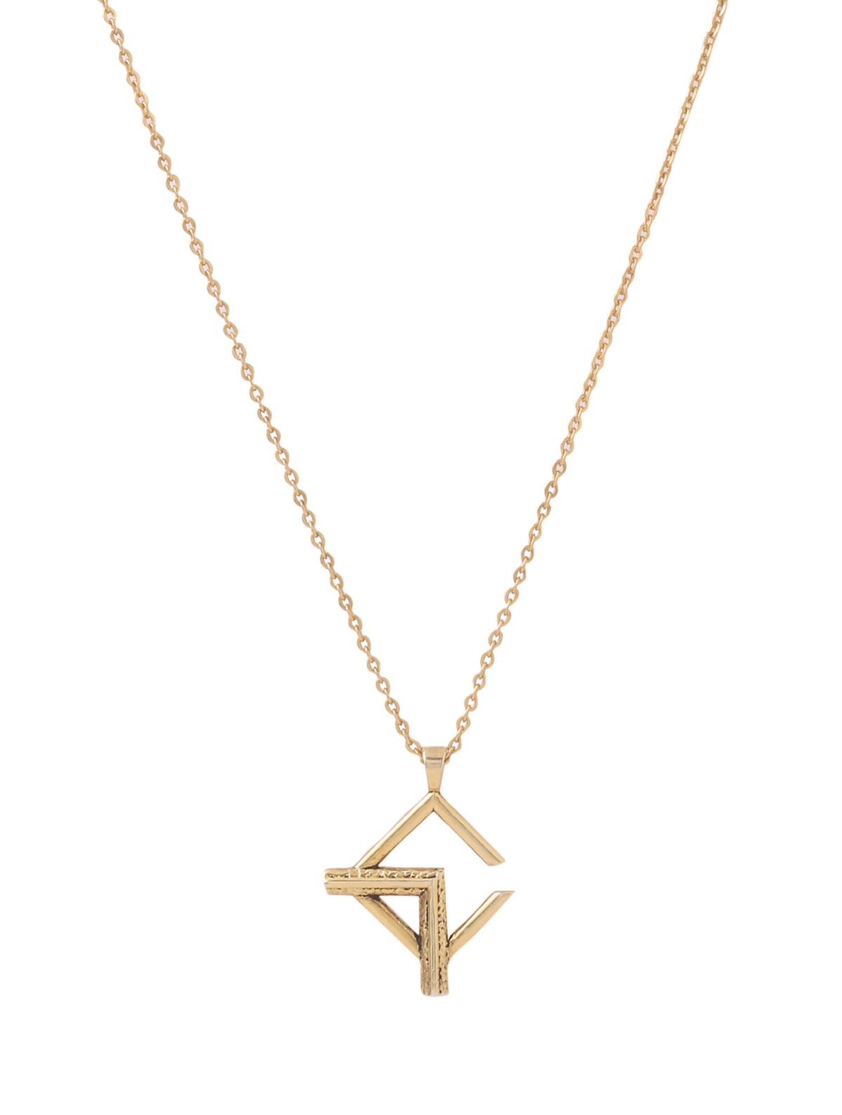 Embrace abstract art with this uniquely designed geometric pendant from our Men's Collection. Made from 925 sterling silver and finished in oxidised 24K gold, this pendant features abstract forms and textured surfaces, presenting a piece that is both visually captivating and symbolically deep.