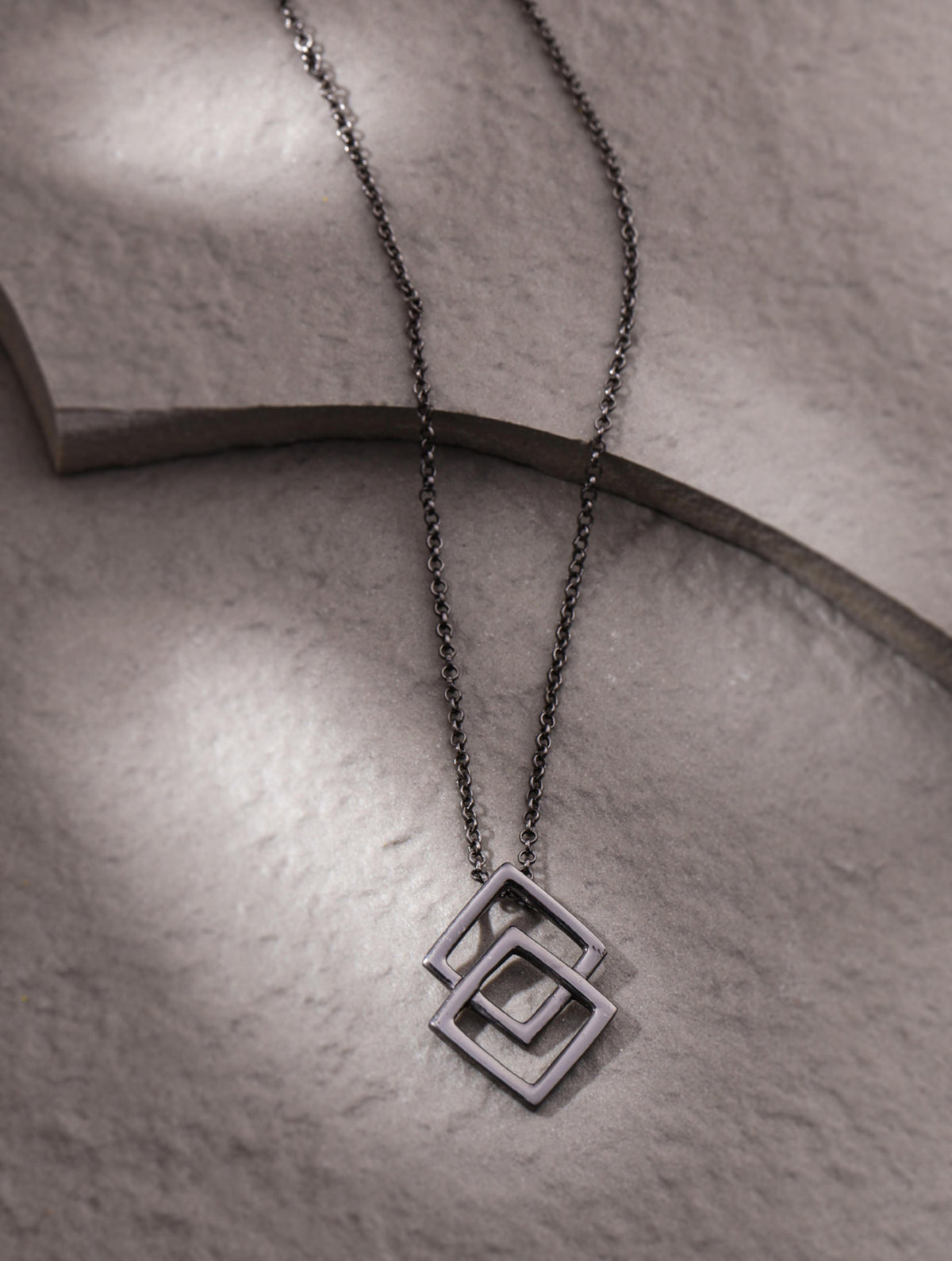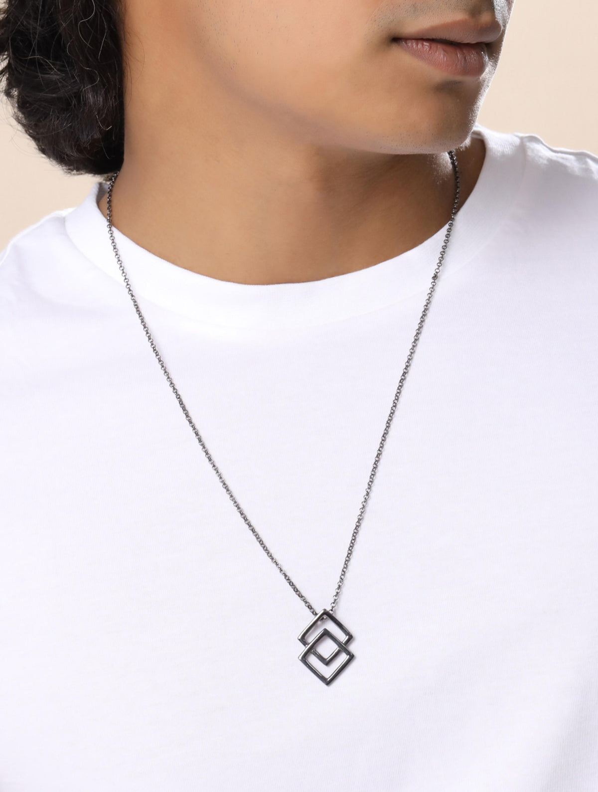 Square- Geometric Ruthenium Jewellery 925 Sterling Silver Pendant For Men