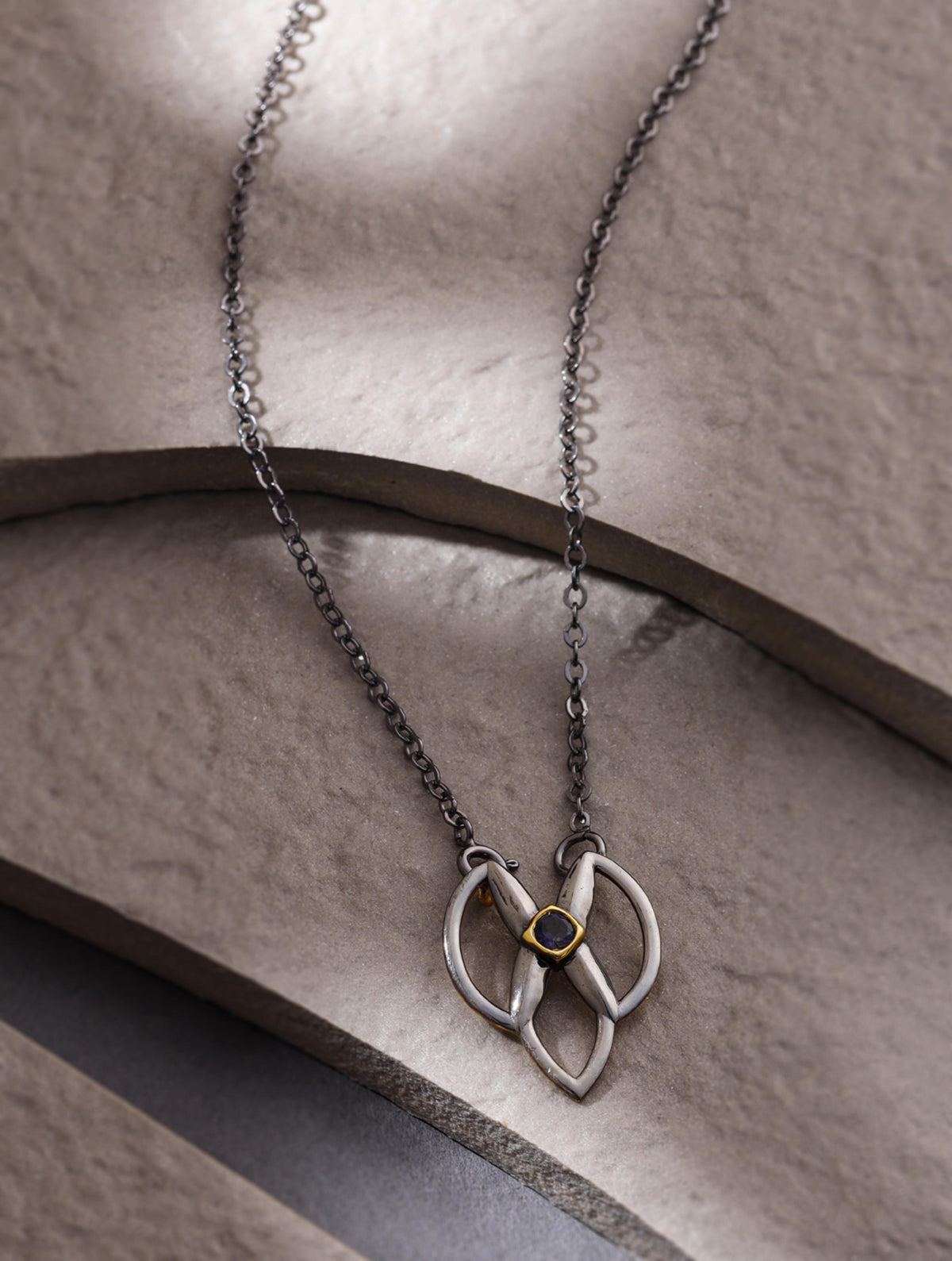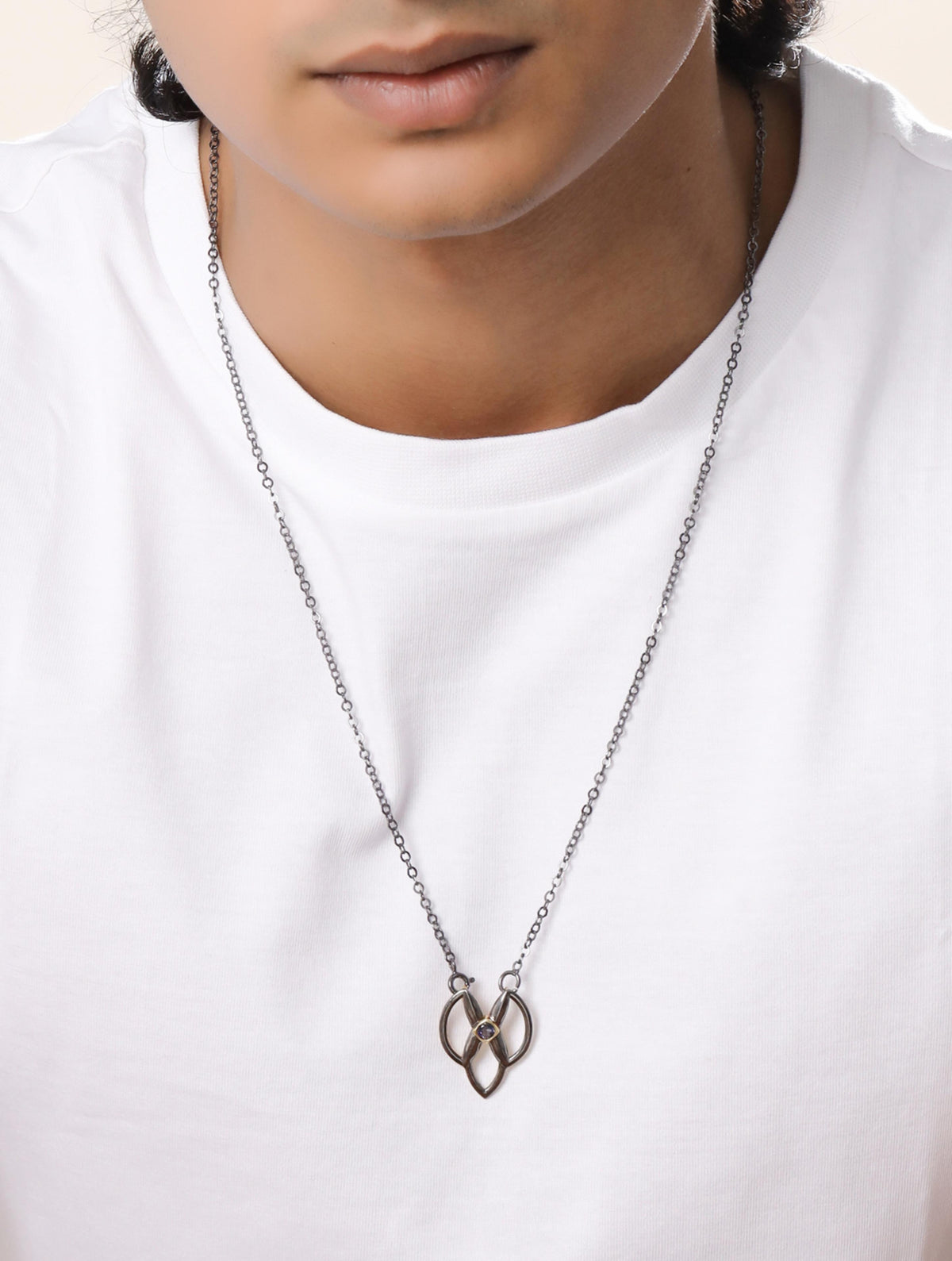 This meticulously designed pendant from our Men's Collection features a sophisticated combination of geometric shapes plated in black rhodium and set with an iolite round stone. The pendant, crafted in 925 sterling silver, epitomizes modern luxury with its dual-tone plating and precision-cut gemstone, perfect for the stylish man who appreciates detail and quality.