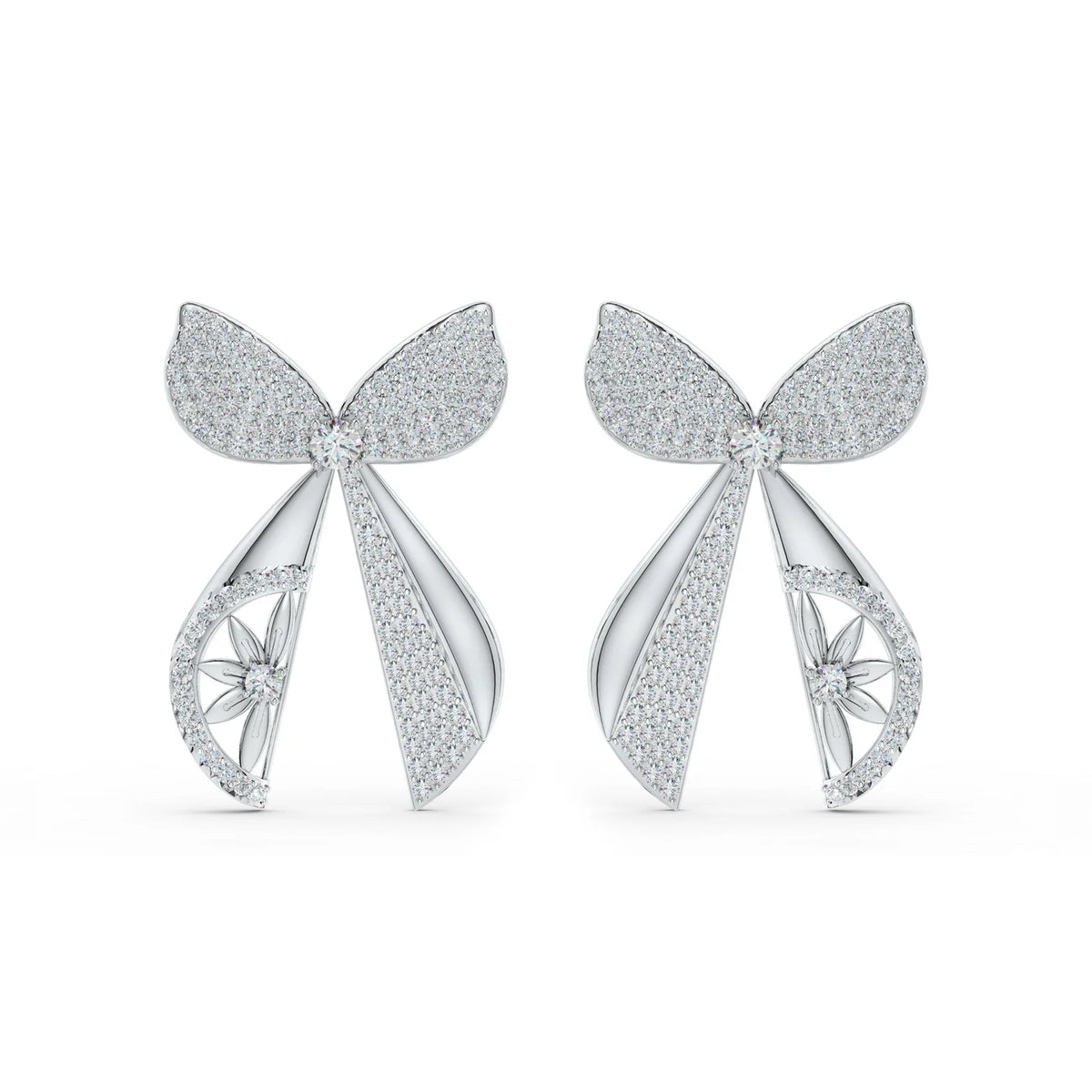 Moissanite Floral Ribbons 925 Sterling Silver Earrings For Women