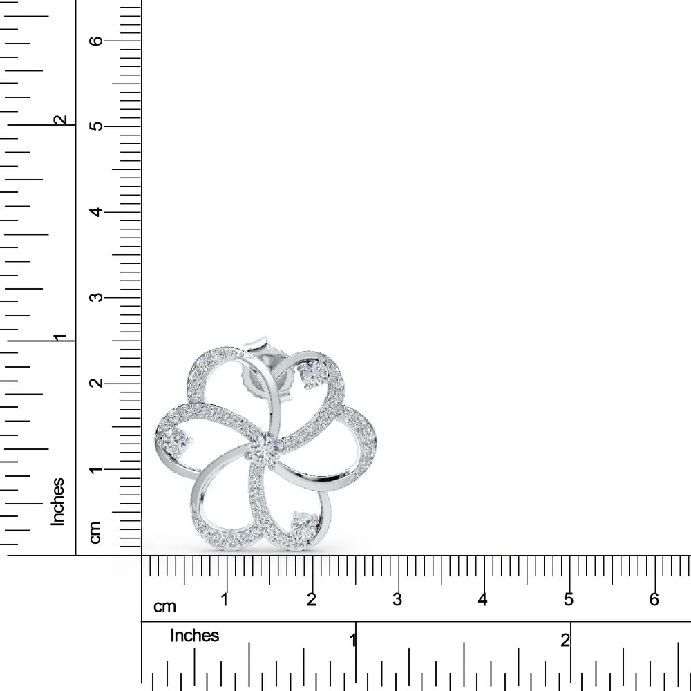 As we designed this piece, we were captivated by the graceful folds of a ribbon—how its glossy side always seems to catch the light. Drawing from this inspiration, we created a floral design where the ‘lighter’ curves are adorned with shimmering moissanites to create a similar effect, adding a touch of refined elegance.