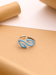 Inspired by the delicate swirls of leaves gently blowing in the winds, this rhodium plated ring is designed to resemble a twin leaved twine that's covered in blue enamel. This adjustable ring is a symbol of letting go and just going with the flow.