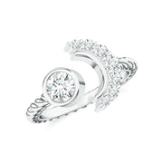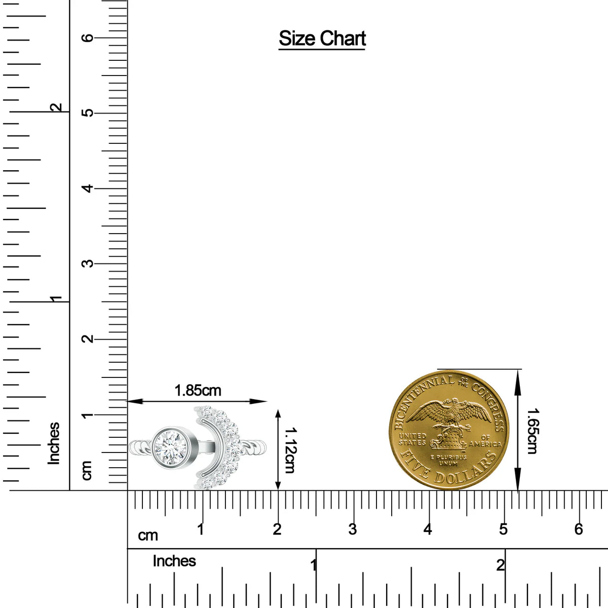 Inspired by things well beyond our lives; this open, adjustable toe ring evokes the allure of the moon's eternal cycle. While one side curls into a delicate half-moon, glistening with moissanite accents, the other side sparkles with a bright circular moissanite, signifying the brilliance of the full moon. This piece serves as a reminder that each stage has its own magic.
