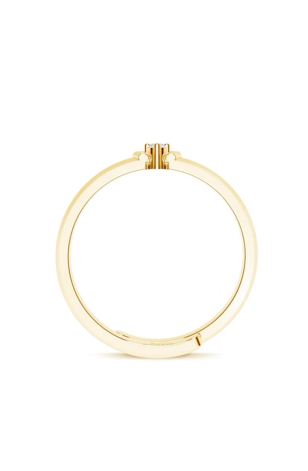 This timeless ring is a perfect accessory for Mangalayam, symbolizing commitment and love. Its minimalist design, inspired by abstract patterns, adds a touch of sophistication, making it an ideal choice for this special occasion.