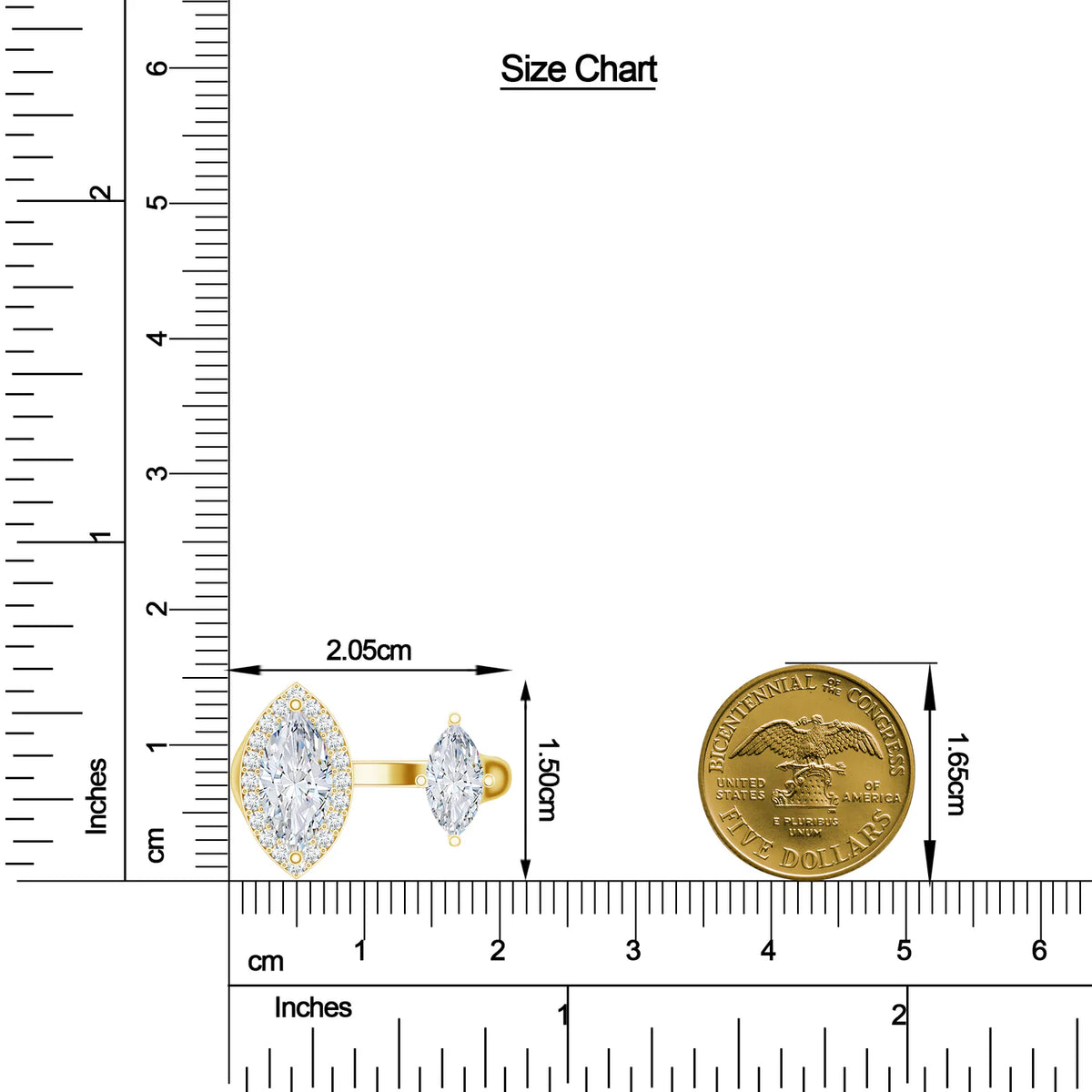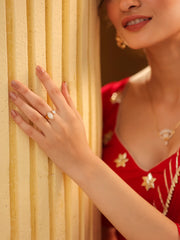 This gold-plated open ring shimmers with marquise-cut moissanites, each stone reflecting light like scattering stardust, creating a delicate embrace of brilliance. Its open design, which can be adjusted for the ideal fit, represents limitless possibilities—a seamless fusion of style and adaptability.
