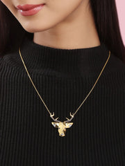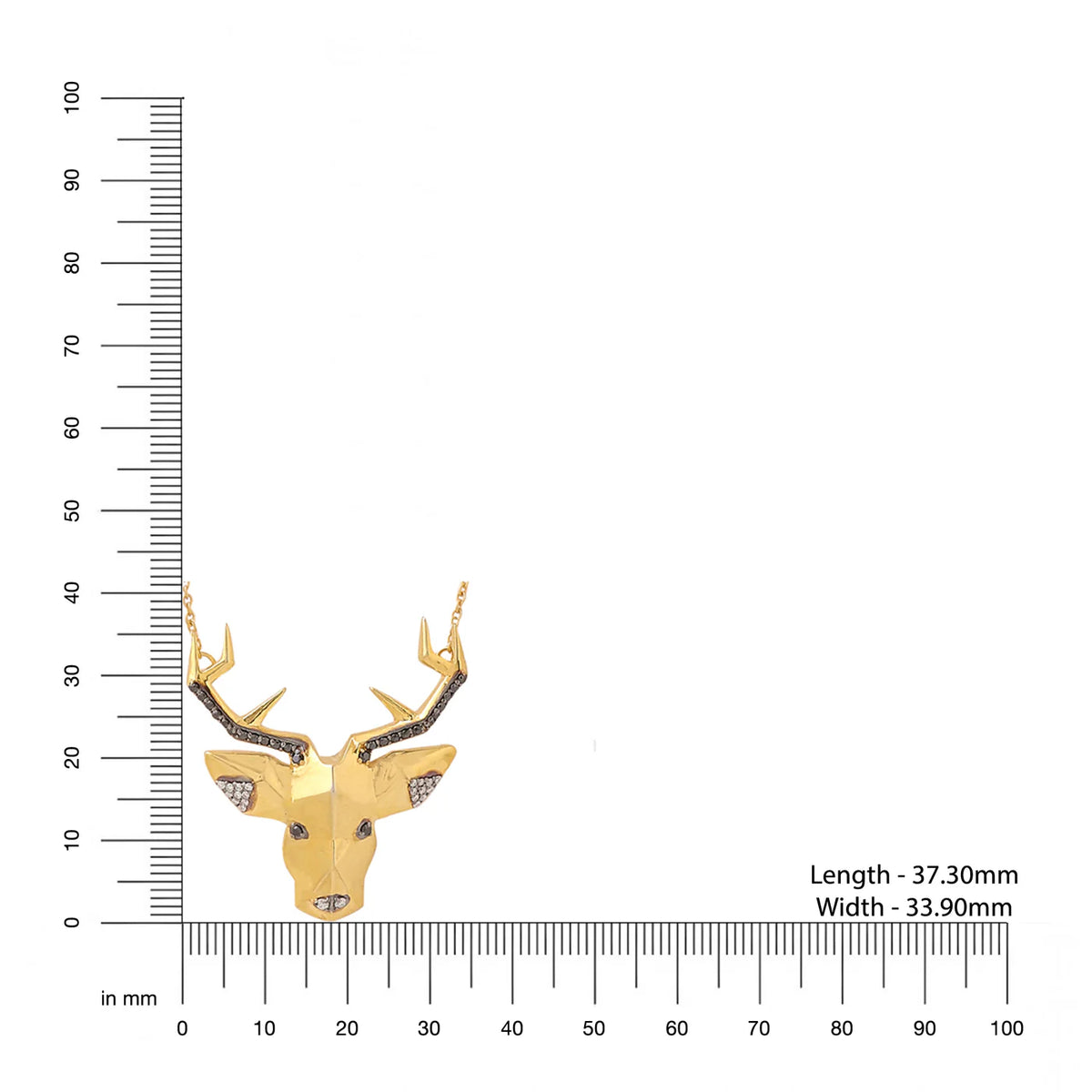 Graceful yet strong, intuitive yet free—this pendant captures the essence of a deer’s quiet power. The angular silhouette mirrors its poised elegance, while the black and white moissanites trace its majestic antlers, adding depth and brilliance. A golden tribute to the old souls who tread gently but leave an everlasting impression.