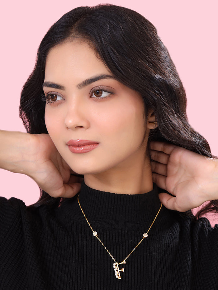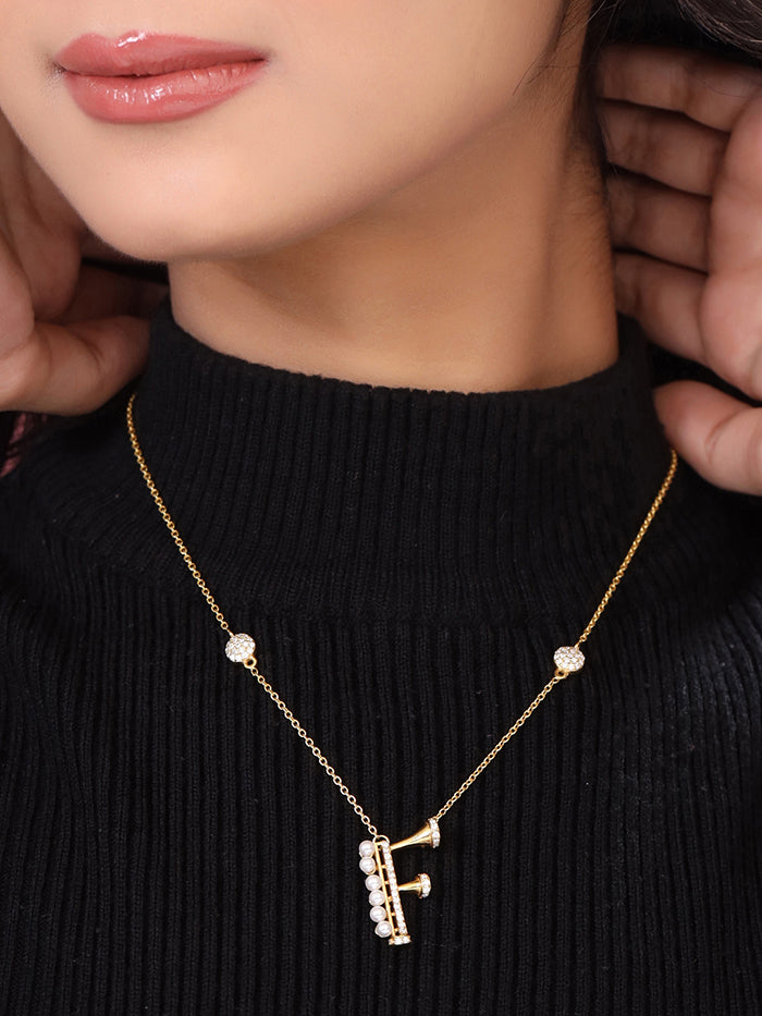 Pearl Gold-plated Charming 'F' Alphabet 925 Sterling Silver Pendant For Women