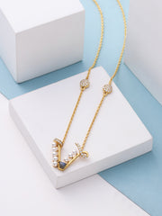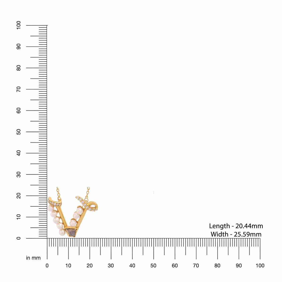 Labradorite Pearl Gold-plated Charming 'V' Alphabet 925 Sterling Silver Pendant For Women