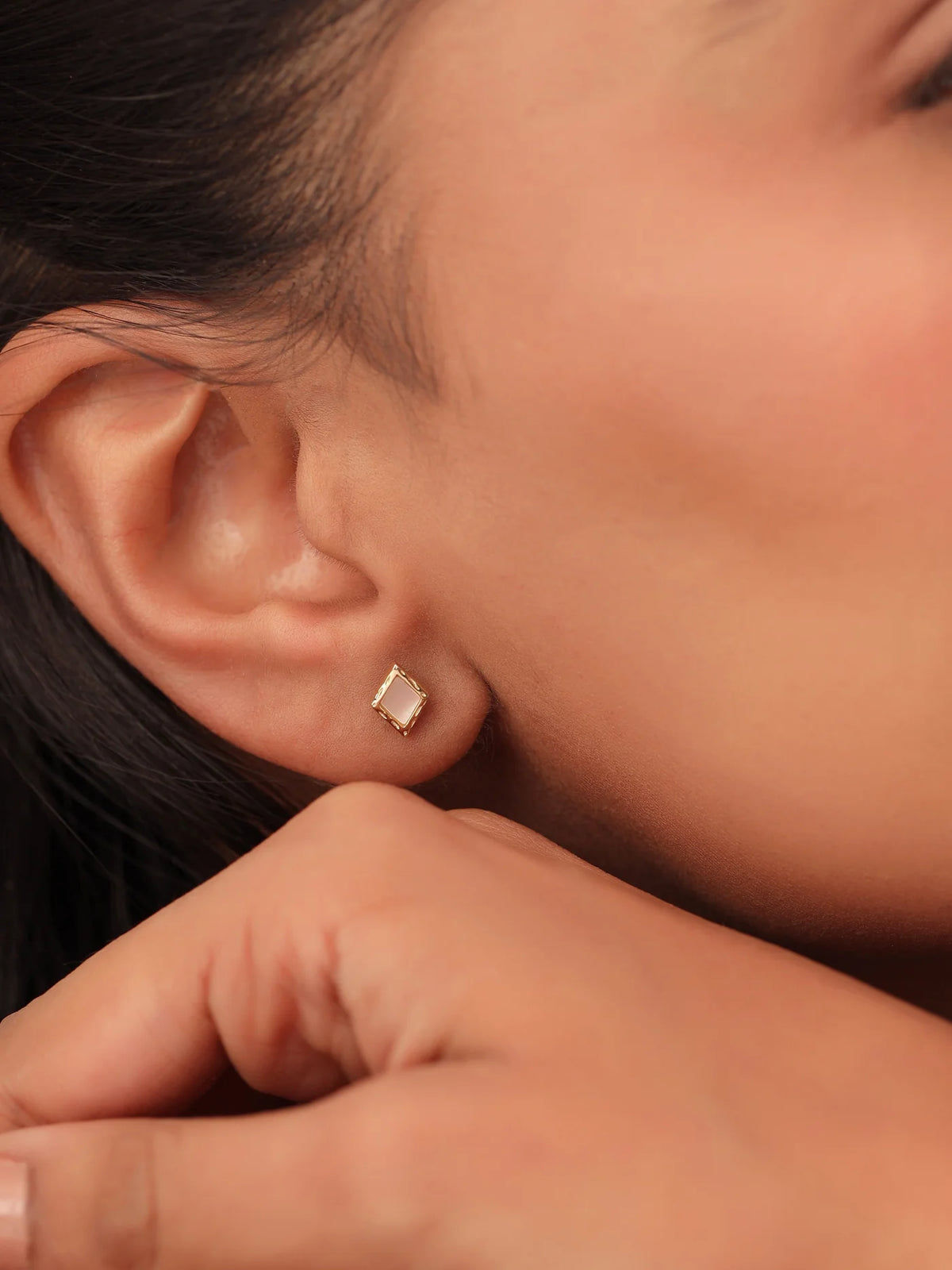 Styling Tip: You can go for these diamond-shaped gold earrings with a modern dress or minimalist pieces to highlight their geometric design and bring a touch of elegance to your daily look.
