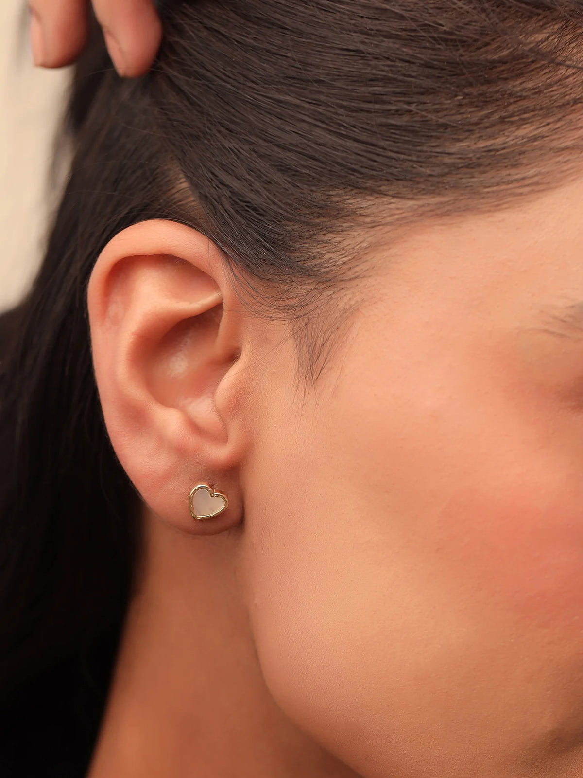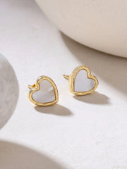 The Syra Collection 24k Gold Heart-Shaped Mother of Pearl Stud Earrings blend romantic charm with luxurious craftsmanship, making them an elegant choice for daily use.