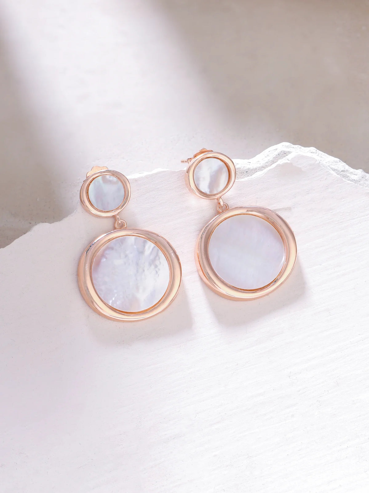 The Syra Collection Rose Gold Multi-Size Mother of Pearl Earrings blend fashion with sophistication, making them a perfect accessory for marriage events, other parties.