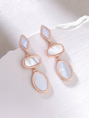 The Syra Collection Rose Gold Geometric Mother of Pearl Earrings combine modern design with classic elegance, making them a versatile accessory for any occasion.