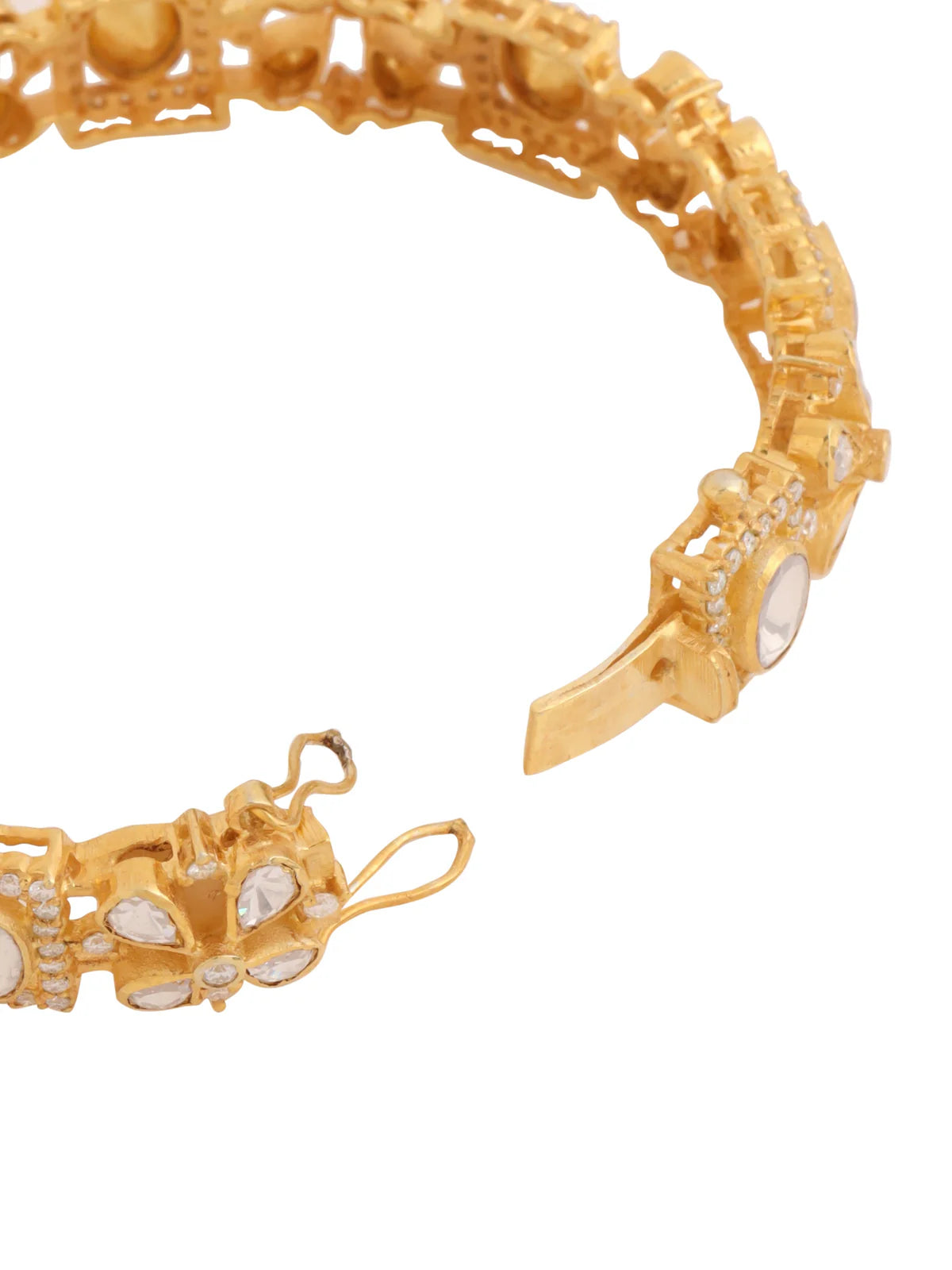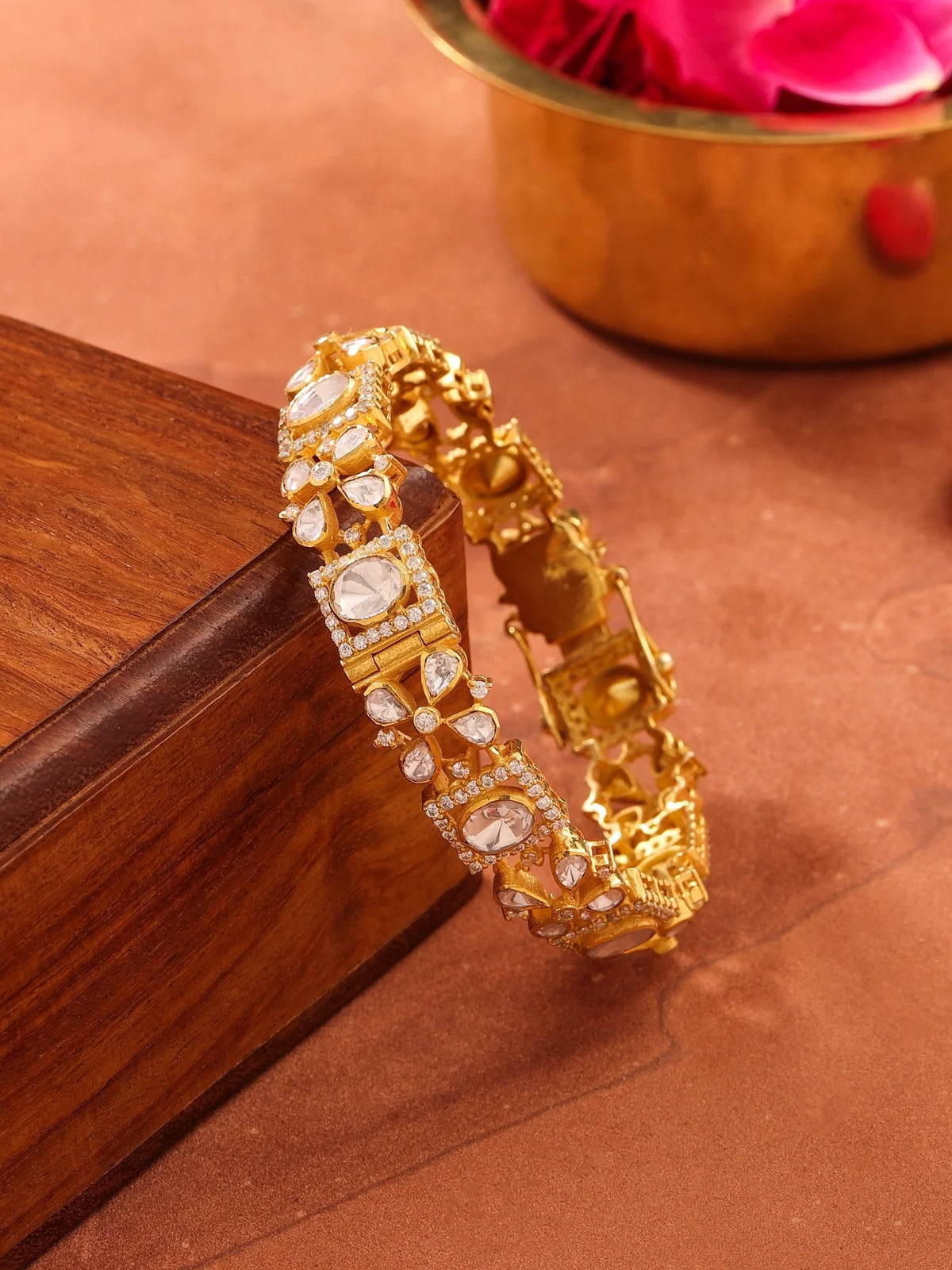 Adorn your wrist with our 925 Sterling Silver Floral Polki Wedding Bliss Bangles, where traditional floral themes meet contemporary craftsmanship.