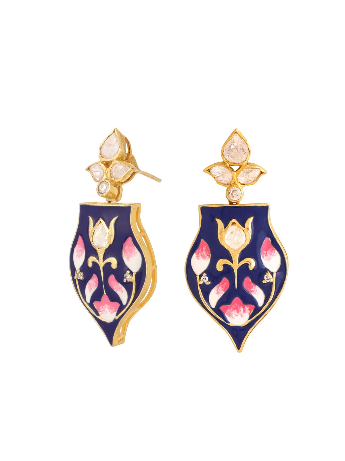 Features: These earrings blend moissanite's brilliance with the vivid charm of Indian floral enamel, offering a standout accessory.