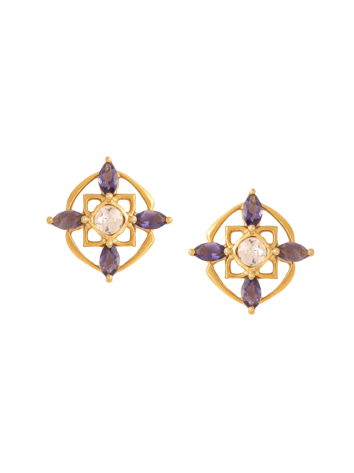 Material:Made from 925 sterling silver, these earrings are adorned with marquise-cut iolite and faceted polki, all under a sleek 24K gold plating.