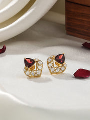 Polki Romantic Garnet Heart 925 Sterling Silver Earrings For Women