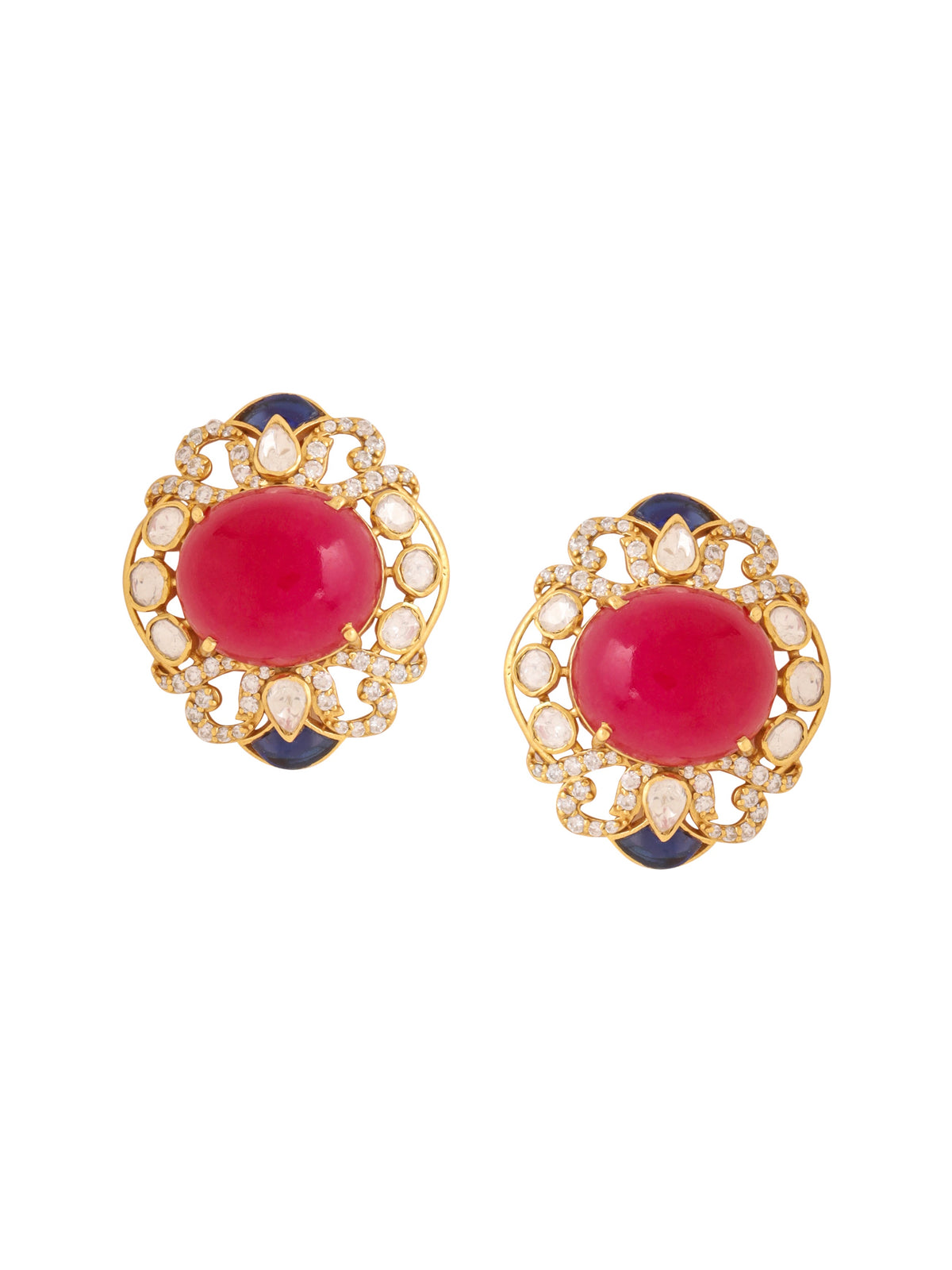 Step into a world of regal floral designs with our "Wedding Bliss" stud earrings, featuring ruby quartz and moissanite in a captivating arrangement.