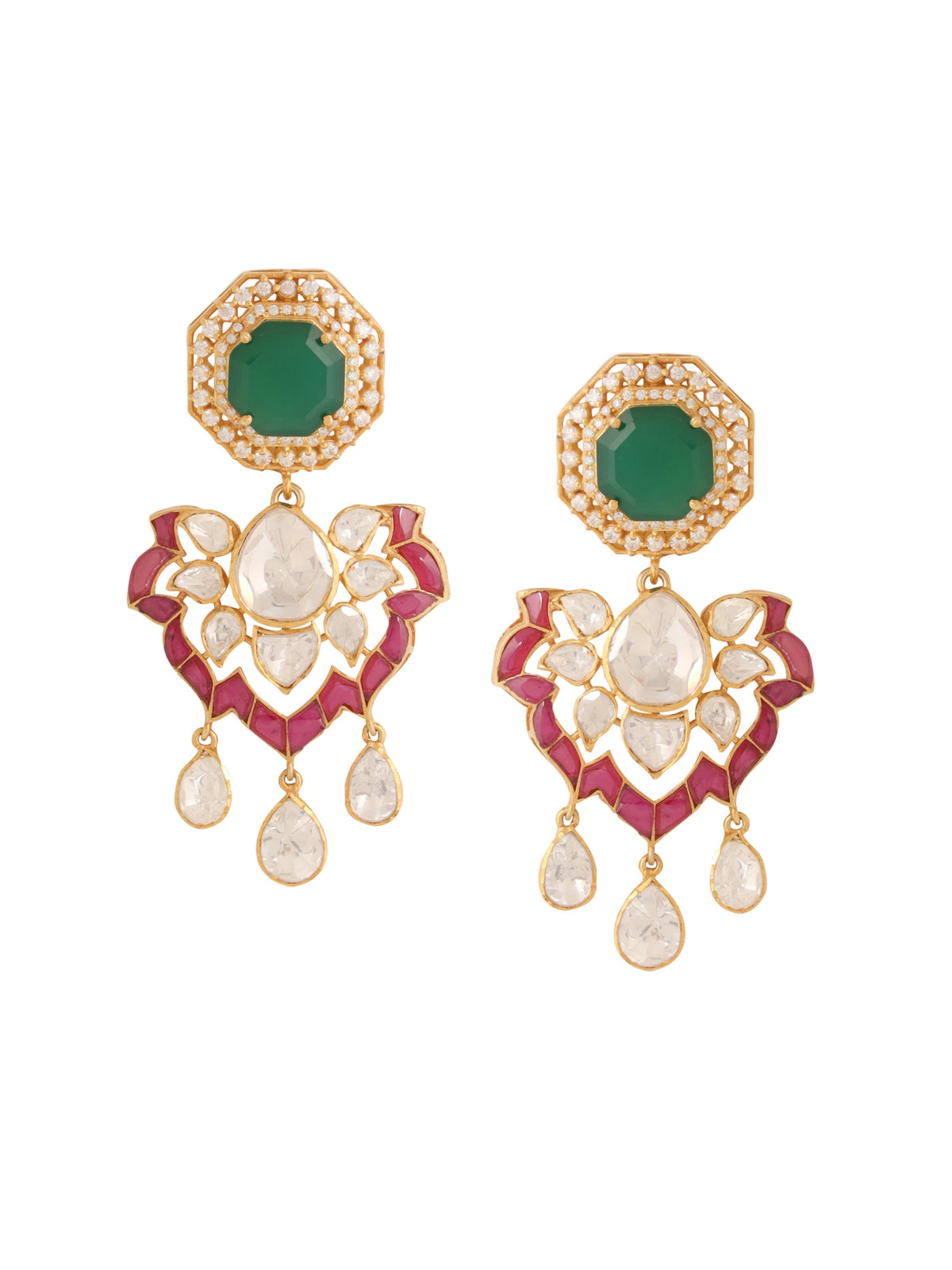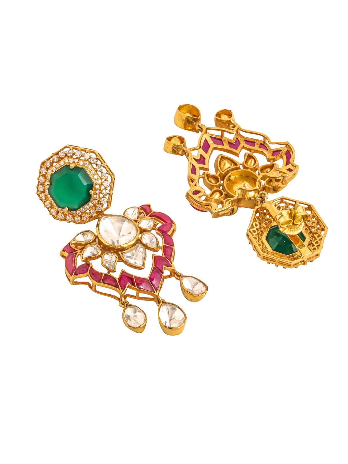 Material:This stunningnecklace setis crafted from 925 sterling silver, featuring green onyx, moissanite polki, and blue and green talfe, all set under a radiant 24K gold plating.