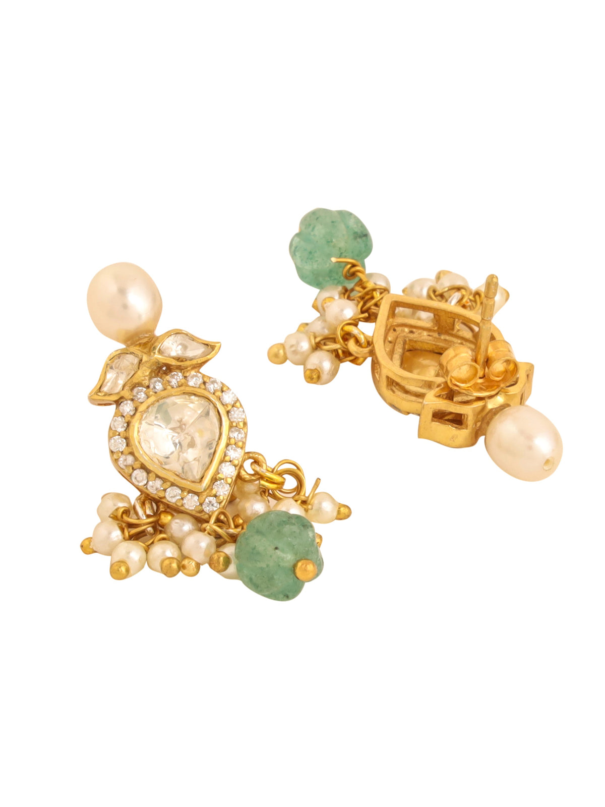 Material: These earrings are beautifully crafted from 925 sterling silver, adorned with strawberry quartz, pearls, and moissanite polki.