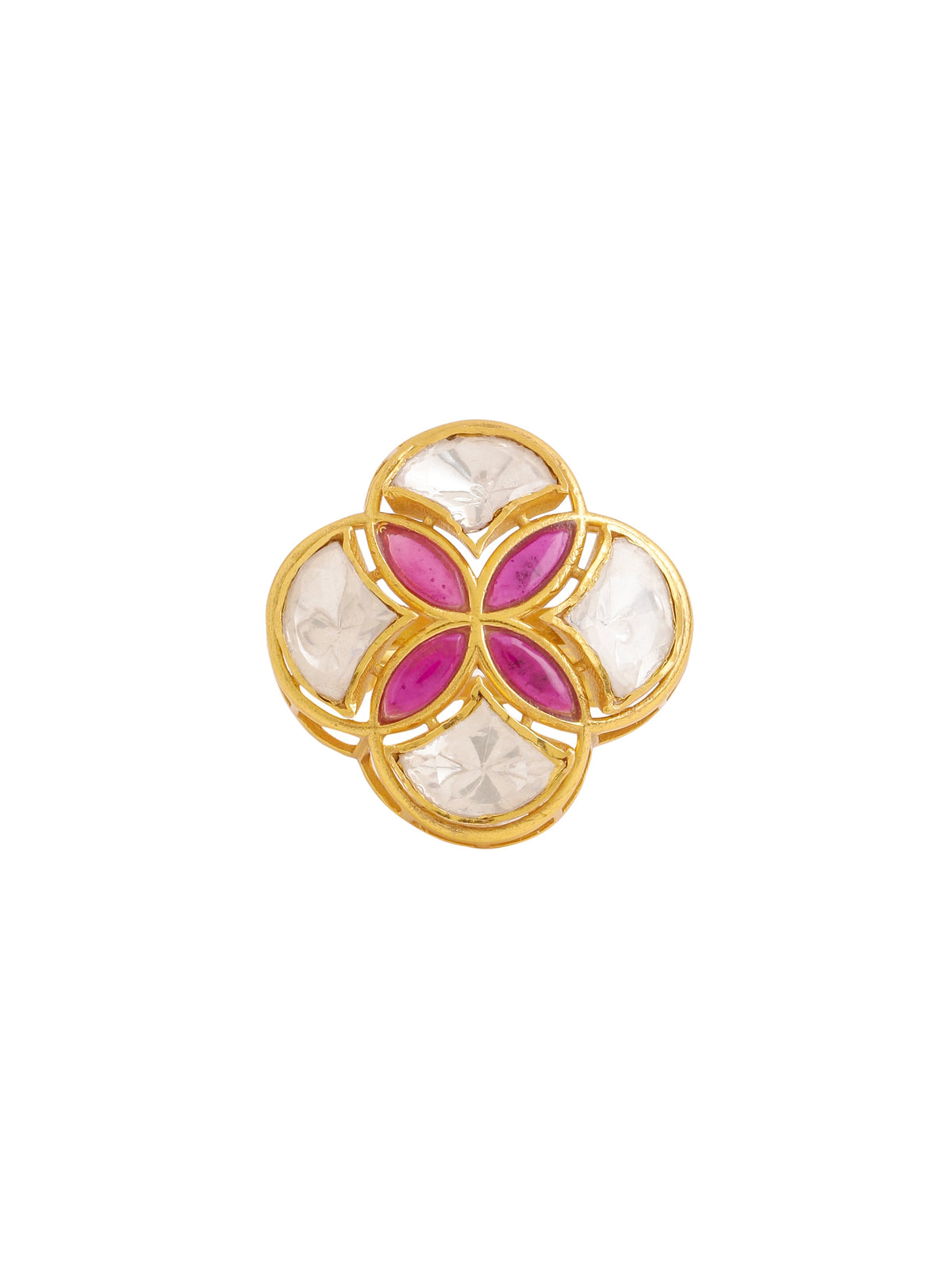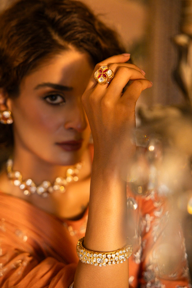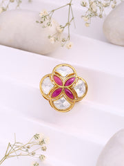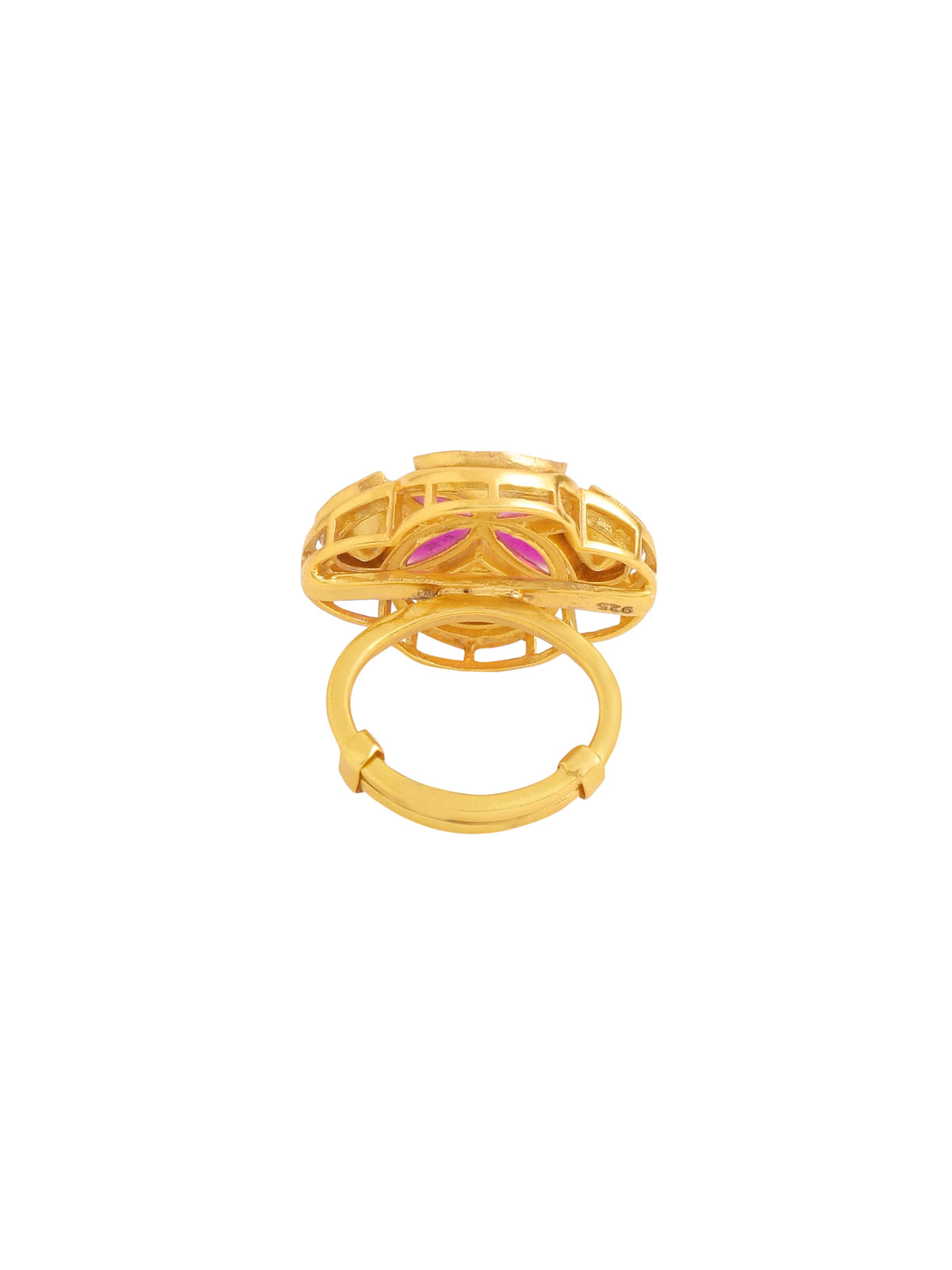 Experience the allure of our 24K Gold Plated Silver Polki & Talfe Wedding Bliss Ring, where classic floral elegance meets contemporary charm.