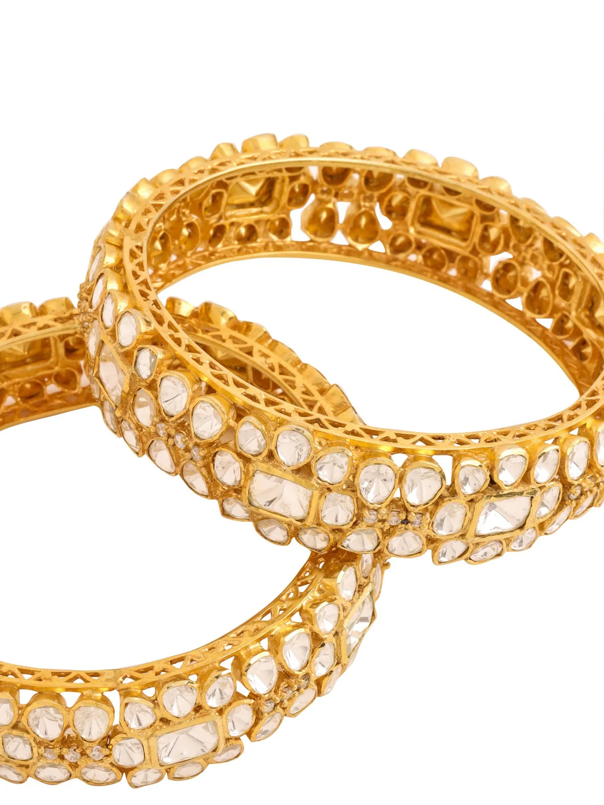 Embrace the floral enchantment of our 925 Sterling Silver Moissanite & Polki Bangles - Wedding Bliss bangle, perfect for adding a sophisticated sparkle to your ensemble.